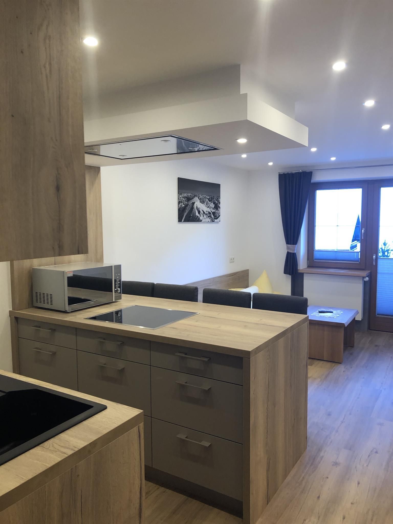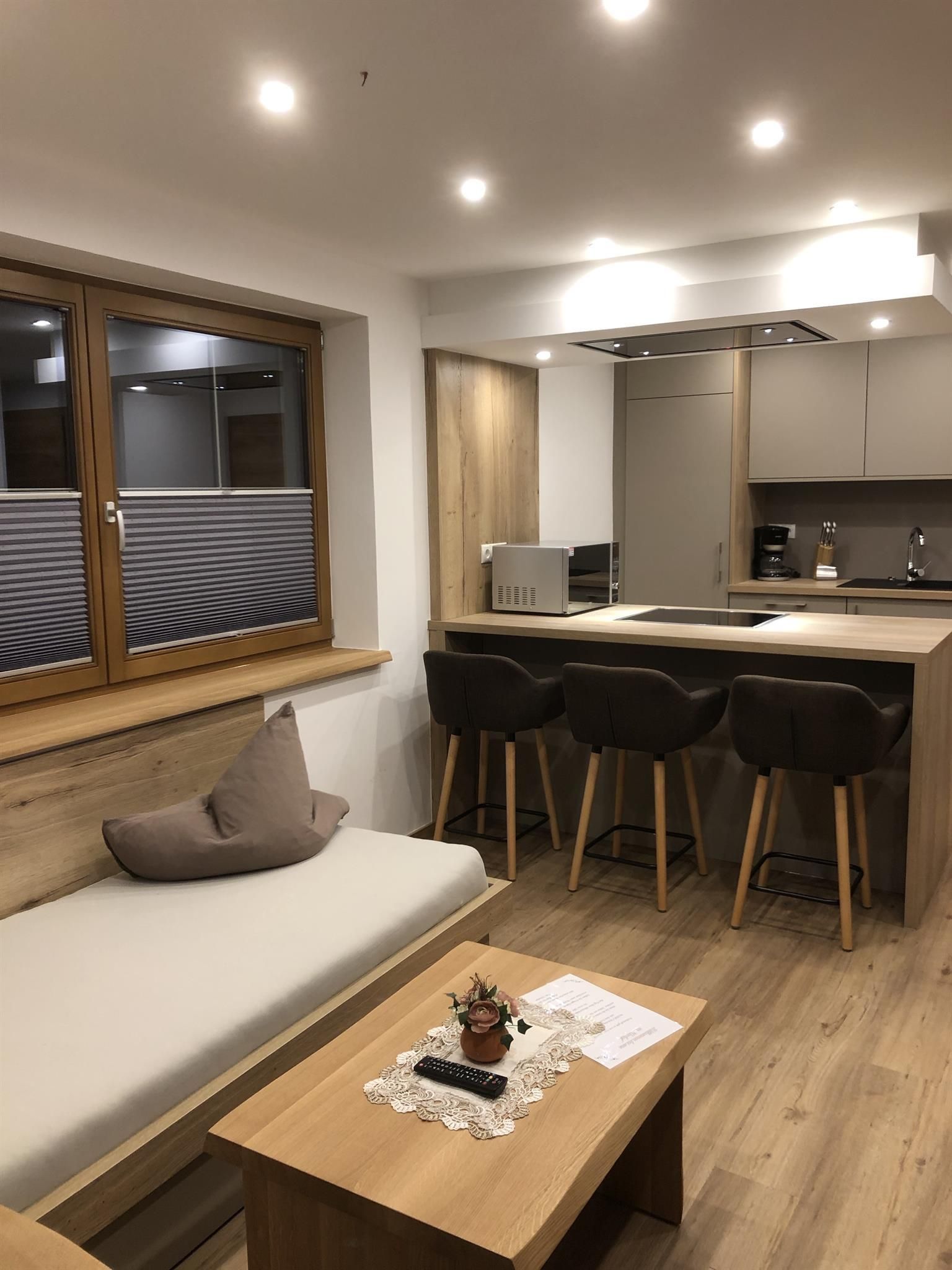 - 1 Wohnküche mit 1 Schlafsofa für die 3. Person, TV, vollausgestattete Küchenzeile mit Kühlschrank, Cerankochfeld (ohne Backofen), Geschirrspüler, Kaffeemaschine, Essecke uvm.